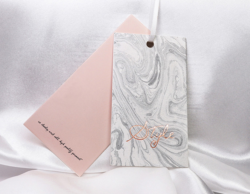 燙金吊牌,服裝吊牌即各種服裝上吊掛的牌子,包含一些服裝材質,洗滌注意事項等信息。燙金吊牌的制作材料大多為紙質,在上面燙上金色字或圖案增強檔次感。燙金工藝:燙金吊牌是提升吊牌檔次的一種常用工藝,燙金或是燙銀都有不錯的效果。看上去閃閃發光,是服裝的首要選擇。